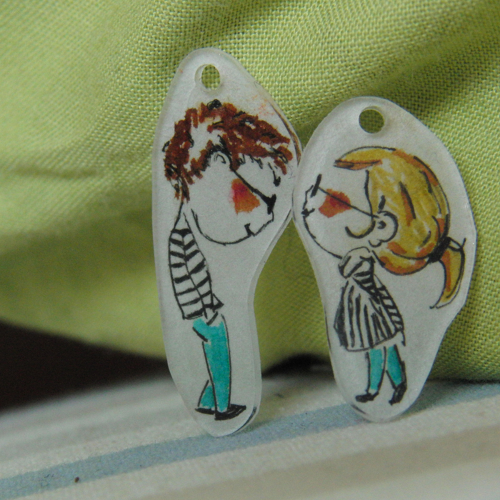 Auch hier hat die Neugier auf neue Materialien gesiegt. Über die hier verwendete Shrinc Plastic bin ich beim Surfen in den unendlichen Weiten des Internets zufällig gestolpert. Das Prinzip ist ganz einfach: malen, schnippeln, backen - fertig. Mehr Motive könnt Ihr in meinem Dawanda-Shop entdecken. Falls Ihr Motivwünsche habt, schickt einfach eine Anfrage.